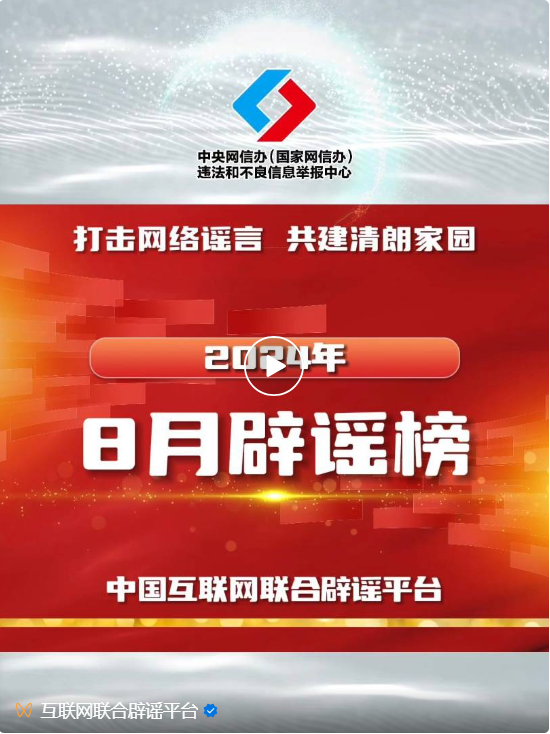打擊網(wǎng)絡(luò)謠言 共建清朗家園 中國(guó)互聯(lián)網(wǎng)聯(lián)合辟謠平臺(tái)2024年8月辟謠榜