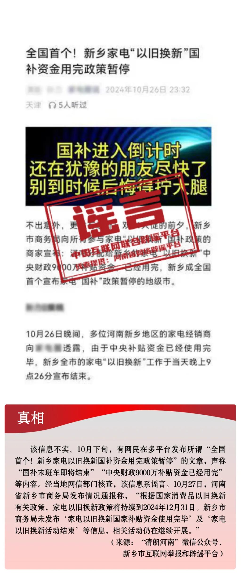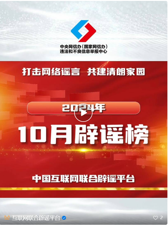 打擊網(wǎng)絡謠言 共建清朗家園 中國互聯(lián)網(wǎng)聯(lián)合辟謠平臺2024年10月辟謠榜