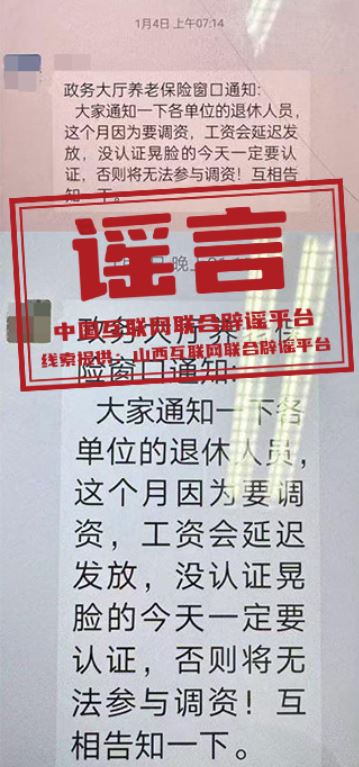 謠言:山西大同“退休人員今天一定要認證,否則將無法參與調(diào)資”?
