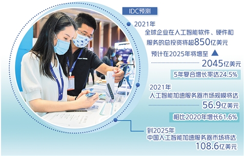 據(jù)了解,全球已有60多個國家和地區(qū)出臺人工智能政策,發(fā)布國家級人工智能戰(zhàn)略。IDC預(yù)測,2021年全球企業(yè)在人工智能軟件、硬件和服務(wù)的總投資將超850億美元,預(yù)計在2025年將增至2045億美元,5年復(fù)合增長率達(dá)24.5%。