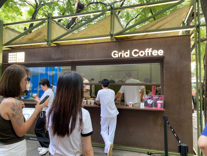 Grid Coffee與迪奧聯(lián)名咖啡吸引消費(fèi)者排隊(duì)購買。