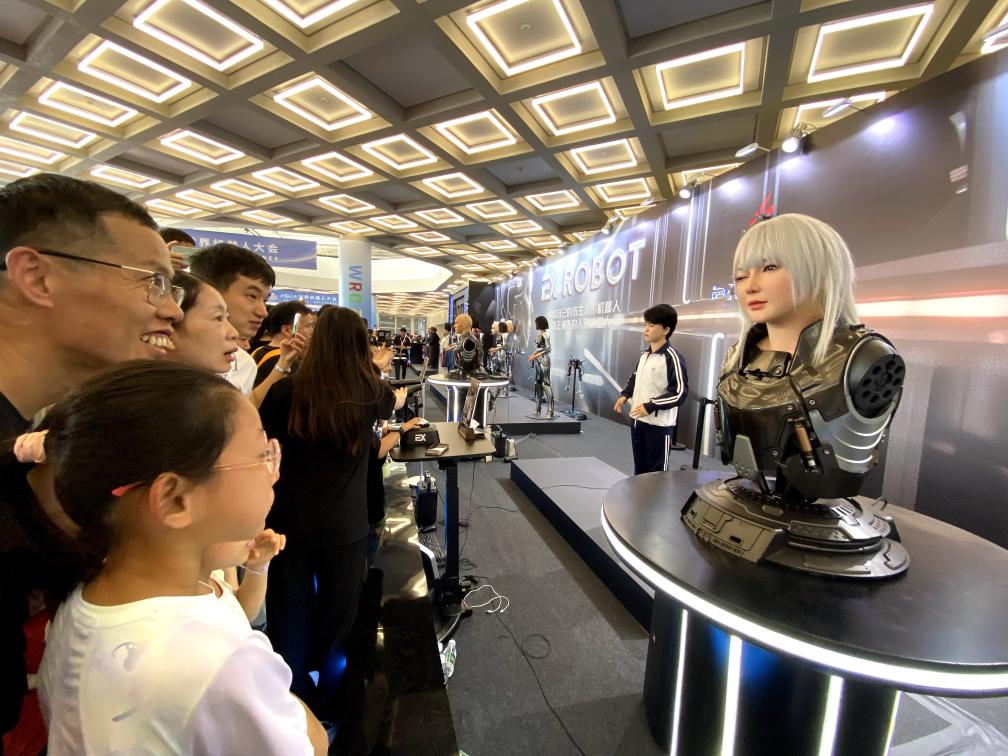 這些造型逼真的仿生人形機(jī)器人引起觀眾極大好奇,展臺前被圍得水泄不通。體驗機(jī)器人制作咖啡、冰淇淋和煎餅果子的觀眾也排成長隊。前沿機(jī)器人科技給觀眾帶來對未來的無限想象。