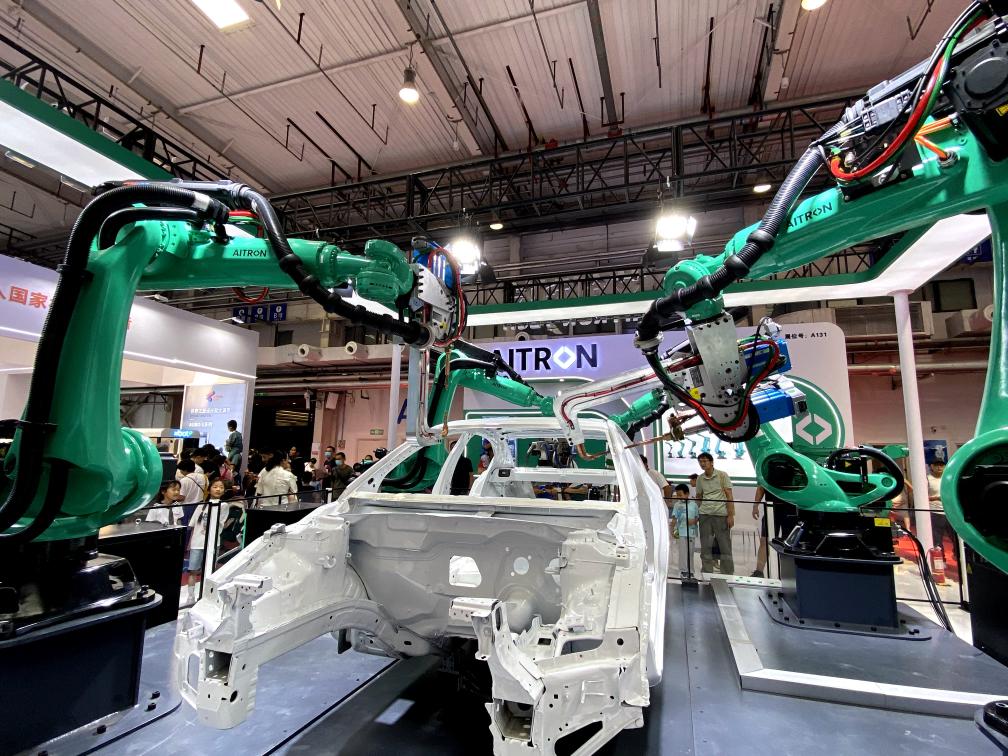 在世界機(jī)器人大會現(xiàn)場,各種機(jī)械手臂的“全能”操作也讓觀眾驚嘆不已。來自山東的工業(yè)機(jī)器人企業(yè)——煙臺艾創(chuàng)機(jī)器人科技有限公司首次參加大會,專門帶來多臺210公斤六軸機(jī)器人,伸展2.7米長的鋼鐵手臂,為觀眾現(xiàn)場展示汽車自動化焊接技術(shù)。