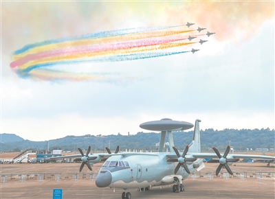 第十五屆中國國際航空航天博覽會將于11月12日在廣東珠海開幕。圖為空軍八一飛行表演隊在珠海進行適應性飛行訓練。新華社記者劉大偉攝