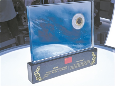 圖為嫦娥六號(hào)月壤樣品在“中國(guó)航天”展臺(tái)向公眾展出。李儀攝