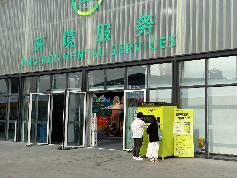 在2025年中國國際服務貿(mào)易交易會現(xiàn)場,觀眾體驗可回收物智能回收機。新華社記者 田晨旭 攝