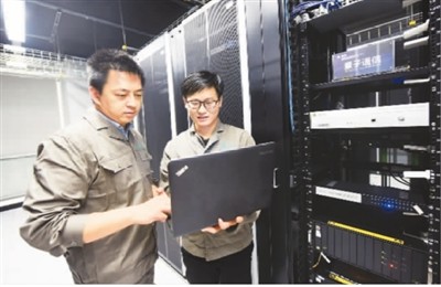 11月2日,國網杭州供電公司信息通信分公司工作人員在通信機房檢查量子通信設備。(人民視覺 龍巍 攝)