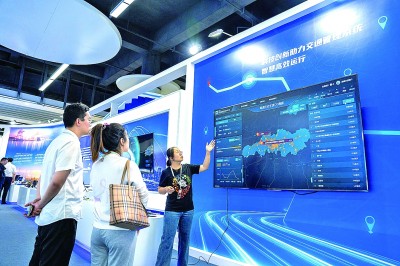 10月26日,工作人員在湖南株洲國(guó)際會(huì)展中心向觀眾介紹北斗技術(shù)在交通管理系統(tǒng)中的應(yīng)用。新華社記者 陳思汗攝