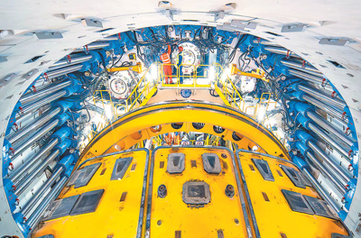 “江海號”盾構(gòu)機內(nèi)景。范少文攝(人民視覺)