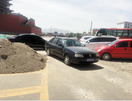 本報(bào)訊 6月2日,記者在北城門(mén)樓西北角看到,車輛停放混亂無(wú)序,有的甚至停放在通行的馬路上。而馬路中央堆放著一堆施工用沙,整個(gè)環(huán)境看上去不和諧。