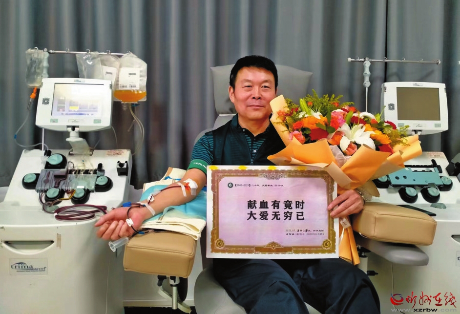 獻(xiàn)血有量,大愛(ài)無(wú)疆。梁占海表示,獻(xiàn)血雖然結(jié)束了,但自己將從此轉(zhuǎn)向無(wú)償獻(xiàn)血志愿服務(wù)隊(duì)伍,終身服務(wù)于無(wú)償獻(xiàn)血這一公益事業(yè)。(本報(bào)記者 王金華)