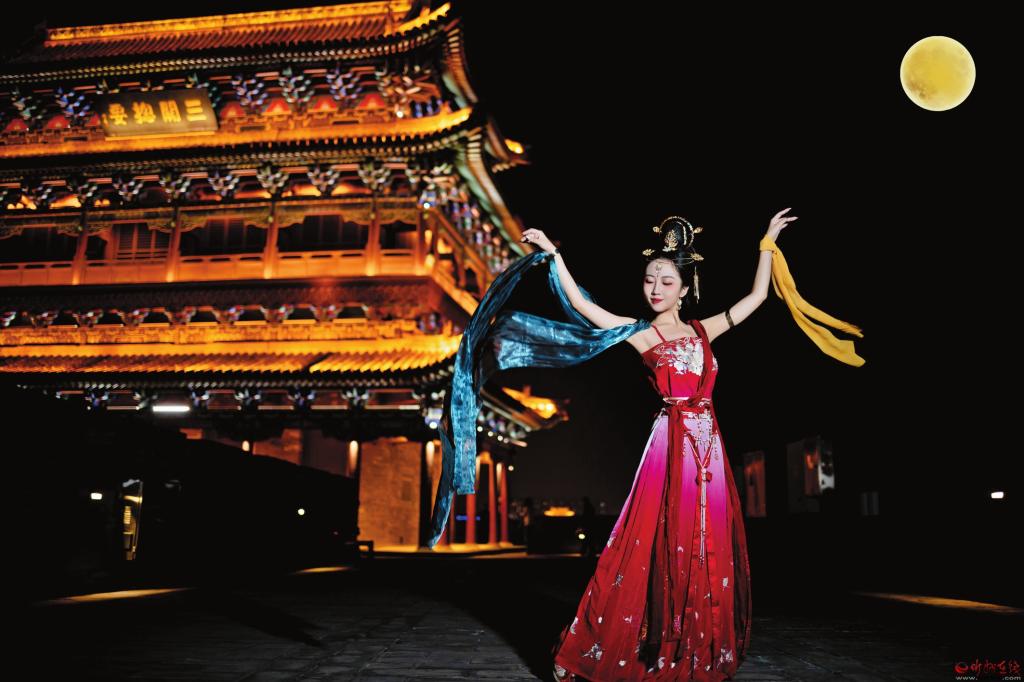 三年來,每到周末或節(jié)假日晚上,忻州古城的北城樓廣場都會有“貂蟬拜月”的舞蹈表演。每次演出,現(xiàn)場觀者如云,人們摩肩接踵。扮演貂蟬的舞者隨著節(jié)奏展現(xiàn)曼妙舞姿,常常博得陣陣掌聲。這位貂蟬扮演者,就是土生土長的忻州女兒——楊淵媛。