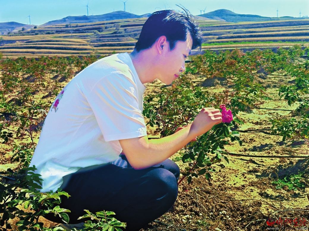 他了解到食用玫瑰有銷路但縣域內(nèi)沒有種植。在與村“兩委”商議后建議村民種植食用玫瑰。這個想法得到了鎮(zhèn)黨委的認(rèn)可,先在圪坨莊村試種8畝、八角村試種2畝。試種初期出現(xiàn)了問題,田里每日需人工澆灌,看管困難。他又建議村“兩委”鋪設(shè)管道建立滴灌系統(tǒng)和安裝監(jiān)控來實現(xiàn)精準(zhǔn)管理。他還與村“兩委”商議,利用光伏資金,設(shè)立工作崗位,從建設(shè)種植到開花期日常維護(hù),用工量已達(dá)100余人次,村民的收入也隨著玫瑰花開而增加。玫瑰示范園的建成,為農(nóng)產(chǎn)品深加工、發(fā)展鄉(xiāng)村旅游和補鏈月餅產(chǎn)業(yè)奠定了基礎(chǔ)。
