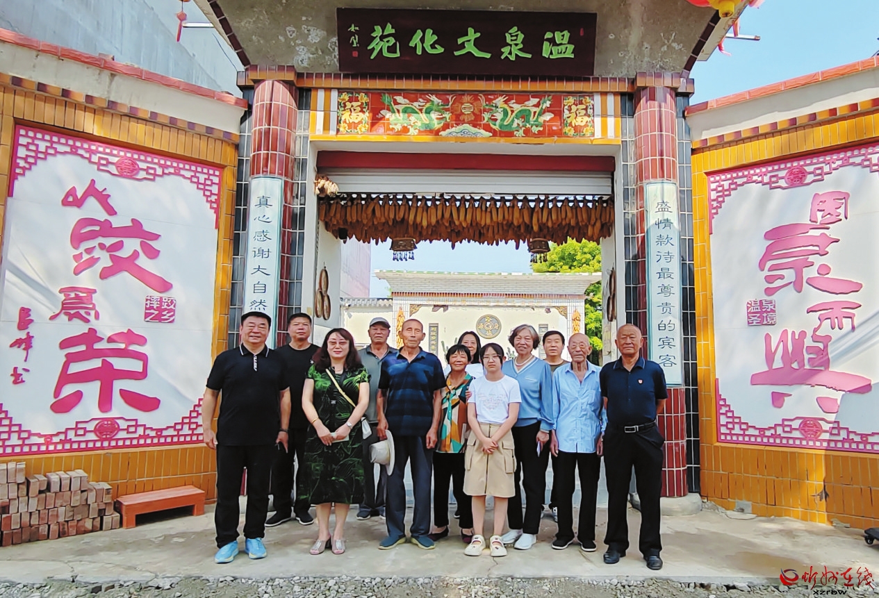 下午,洗了溫泉澡游過泳后,村委主任王俊偉領著大家來到村西南一塊地頭,這里是當年張連印帶著戰(zhàn)士們和鄉(xiāng)親們打井的地方,由于出水量受限已回填掩埋。眼前是高高的建筑群和生長茂盛的莊稼,站在張連印留下足跡和灑過汗水的地方,王秀蘭仿佛看到了當年熱火朝天的打井場面,看到了丈夫從容指揮和忙碌的樣子,她默默地說:“連印啊,南高的鄉(xiāng)親們記著你,這里的一草一木記著你,你永遠活在老百姓的心里!”