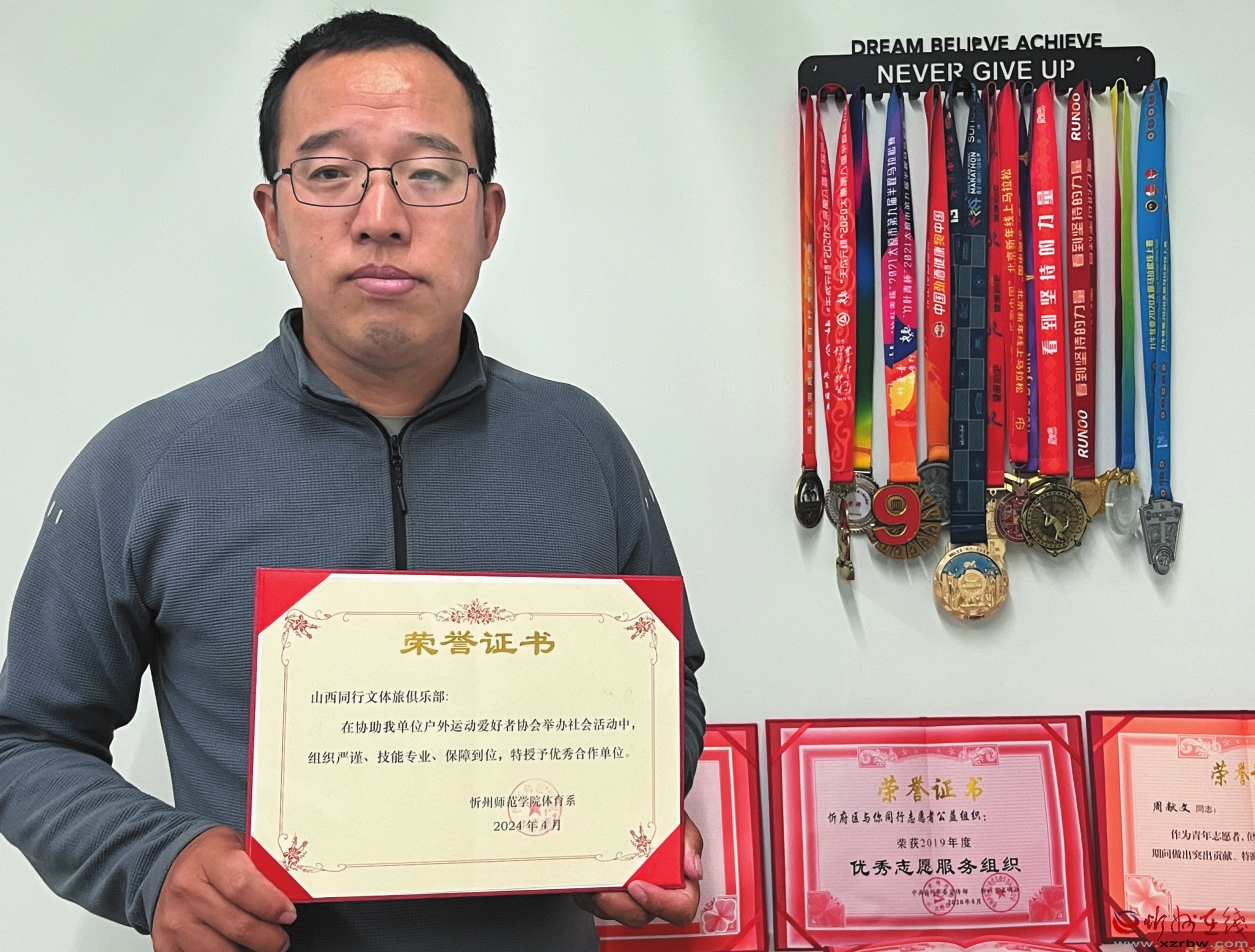近年來,他以宣傳保護環(huán)境、擁抱低碳生活為主題,先后組織舉辦了25次行走長城專題活動、5屆滹沱河徒步大會、4期無痕山野環(huán)保公益活動,多次義務清潔劉家山、森林公園、雙乳湖等處的野外垃圾,舉辦跑步、騎行、徒步等全民健身活動370多期,有近1萬多人次參加。2023年承辦的忻州市體育局迎新年全民健身活動、協(xié)助忻州師院體育系開展的休閑體育活動等均受到相關(guān)部門表彰和肯定。