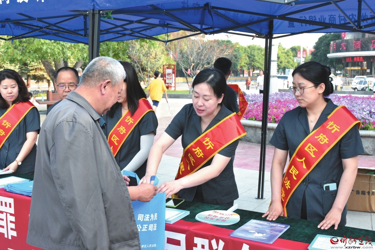 劉佳(右二)正在向過往群眾發(fā)放宣傳手冊(cè)