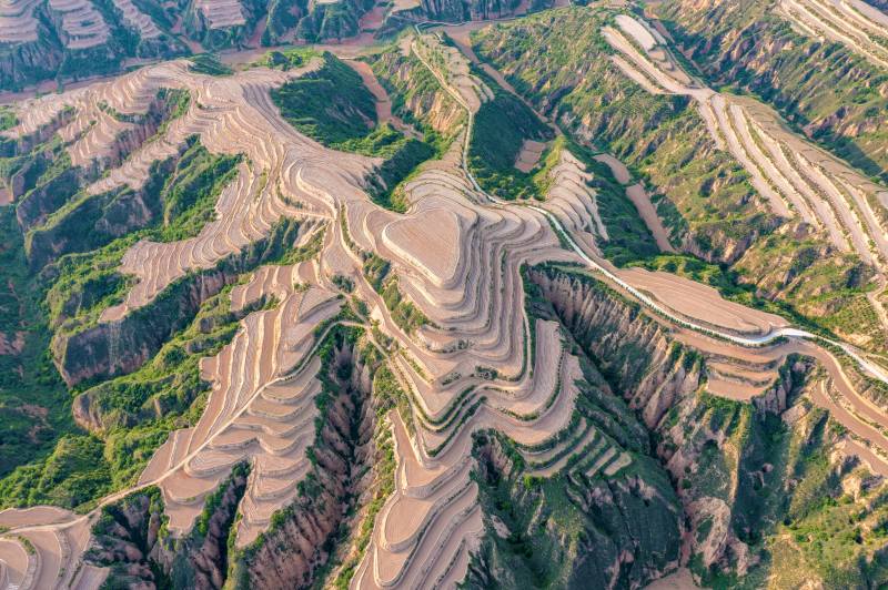 圖為層層梯田,阡陌縱橫。