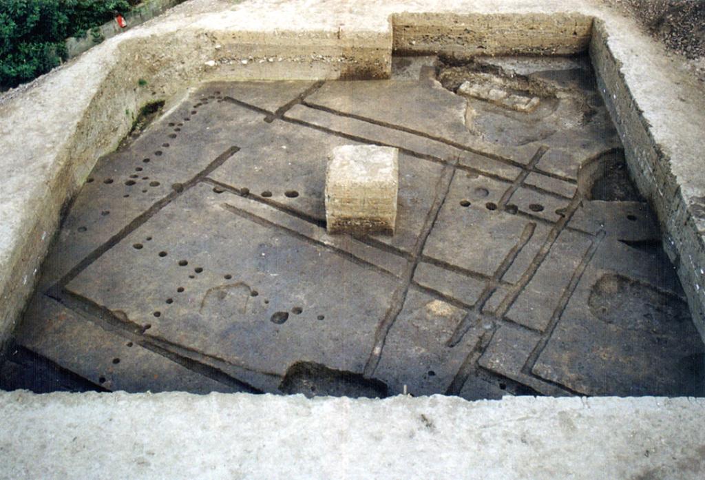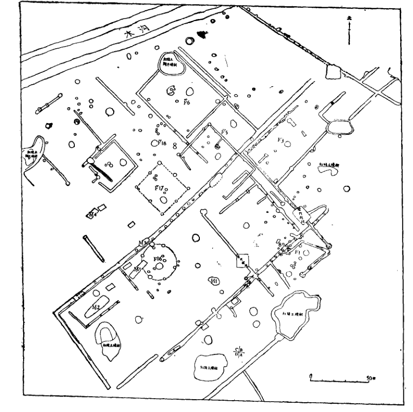 1980年11月,四川省文管會、四川省博物館與廣漢縣文化館組成聯(lián)合發(fā)掘隊,在三星堆地點東側進行發(fā)掘,發(fā)掘面積1100平方米,于次年5月結束工作,發(fā)現(xiàn)房址共有18座。這些房址平面形狀有方形、長方形和圓形。通過對柱洞和溝槽推算,房屋面積一般在10-25平方米之間,多在一側開門,門的朝向不一,少數(shù)房內有隔墻(如F2)。居住面建在生土層上,較堅實,可能經過踩踏或拍打,少數(shù)居住面上加了一層白膏泥。