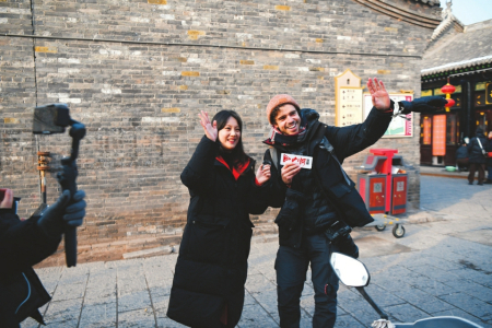 龍祥鳳瑞迎新春、龍躍鳳舞鬧新春、龍章鳳彩賀新春,熱鬧的平遙中國年吸引不少外國友人來打卡,吃美食、看文化、當回“晉商少奶奶”?!捌竭b古城歷史悠久,是曾經(jīng)的‘中國華爾街’,在全世界都非常著名,晉商票號讓人感到震撼。”臘月廿七中午,剛剛結(jié)束山西大同行程的葡萄牙游客Joao與哥哥來到平遙古城。Joao是一位中國歷史愛好者,談起腳下的平遙古城連連豎起大拇指,“我們特意把平遙的旅程放在春節(jié)這段時間,要轉(zhuǎn)轉(zhuǎn)古城的歷史遺跡,還要看看古城的特色演出,感受一番地道的中國年?!?/p>