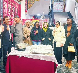 “我在山西過大年”,2月23日,正月十四,省對外友協(xié)組織30余名在晉留學生來到清徐,參加元宵節(jié)民俗體驗活動,看社火、賞非遺、滾元宵、了解老陳醋和葡萄酒文化,留學生們被中國元宵節(jié)的紅火熱鬧氣氛深深感染。來自巴基斯坦的留學生yahya告訴記者:“太有趣了,這是我第一次感受中國的元宵節(jié),和來自不同國家、文化背景的同學們一起慶祝,是我人生中美好的回憶?!睘樽屃魧W生沉浸式體驗中國年,省內(nèi)高校各顯神通,或贈送春節(jié)吉祥物、燈籠、年畫等;或組織“筆墨凝書香,春聯(lián)進萬家”手寫春聯(lián)活動;或開展“留學生中國家庭春節(jié)”體驗日,邀請留學生在中國教師家中吃團圓飯,學習剪窗花、做花燈、包餃子,感受中華傳統(tǒng)年文化和家文化魅力。山西醫(yī)科大學國際教育學院院長樊清華說:“在教授好專業(yè)知識的同時,我們要為留學生提供更多了解中國經(jīng)濟社會發(fā)展、中華歷史文化的平臺和機會,通過親身參與春節(jié)文化活動可以幫助他們感知山西、了解中國、讀懂中國?!?/p>