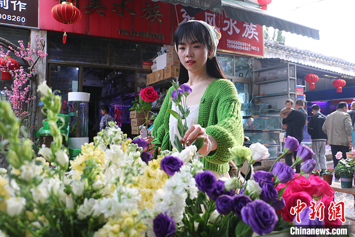 3月23日,安徽省合肥市裕豐花鳥魚蟲市場,“Z世代”女孩詹銀銀正在挑選鮮花,準(zhǔn)備擺攤銷售。隨著氣溫回升,鮮花市場迎來一波熱度。記者近日在采訪中了解到,中國年輕人正在通過各種鮮花消費(fèi)場景把春天“帶回家”,鮮花消費(fèi)已突破固有的節(jié)日專屬儀式感,成為年輕人日?!皭偧骸钡闹匾绞?。中新社記者 張強(qiáng) 攝