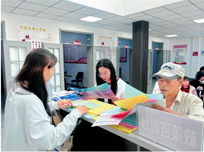 在零工市場服務(wù)大廳內(nèi),休息座椅、飲水機(jī)、急救藥箱一應(yīng)俱全,還提供免費(fèi)茶水、免費(fèi)WiFi、免費(fèi)借閱圖書、工具租賃等便民服務(wù)。前來登記的求職者絡(luò)繹不絕,工作人員與志愿者指導(dǎo)他們填寫《求職人員登記表》,并重點(diǎn)填寫是否參加過職業(yè)技能培訓(xùn)、是否有參加技能培訓(xùn)的意愿,以便為供需雙方搭建平臺(tái)。
