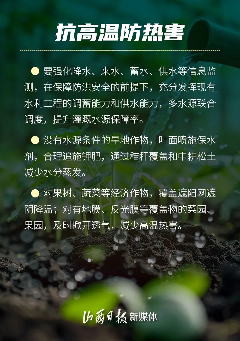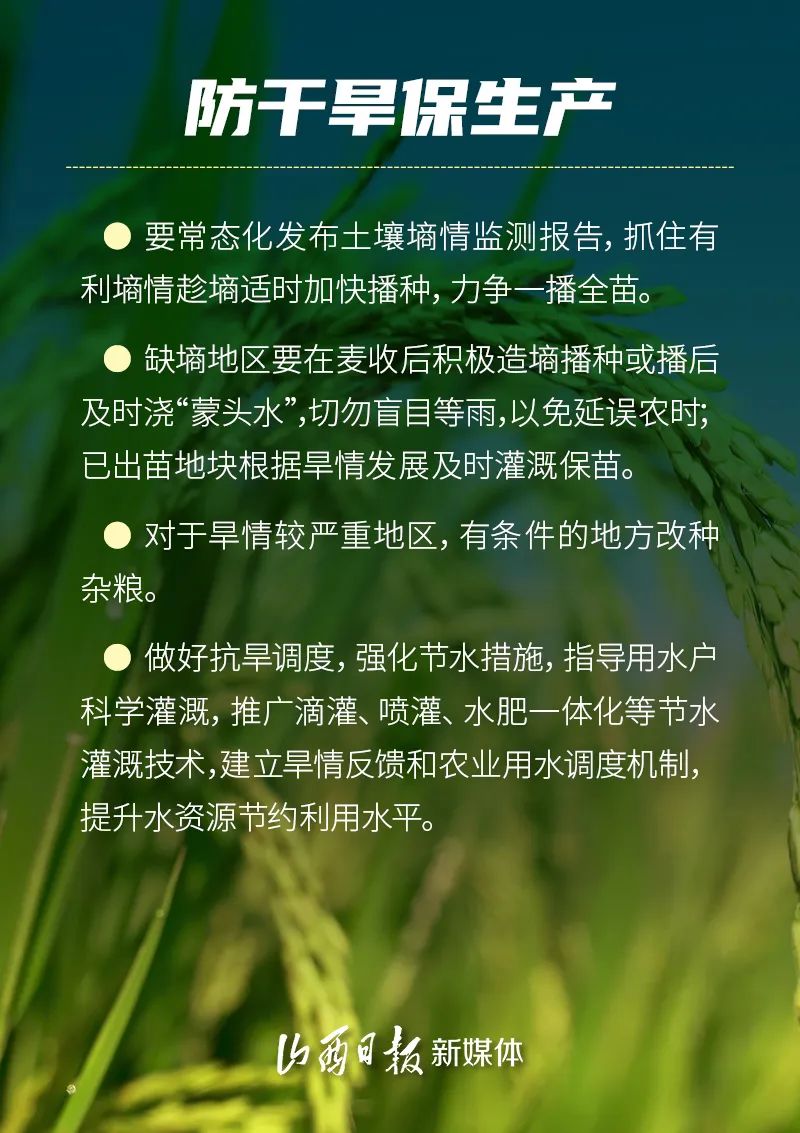 6月—8月是糧食作物生長發(fā)育和產(chǎn)量形成的關(guān)鍵期。預(yù)計(jì)今年汛期全省可能出現(xiàn)區(qū)域性極端強(qiáng)降水過程并引發(fā)洪澇和次生地質(zhì)災(zāi)害,未來三個(gè)月全省平均氣溫較常年同期偏高。因此,省農(nóng)業(yè)農(nóng)村廳會(huì)同省水利廳、省應(yīng)急管理廳、省氣象局制定《科學(xué)應(yīng)對旱澇等自然災(zāi)害奮力奪取秋糧和全年糧食豐收預(yù)案》,全力抓好防汛抗旱應(yīng)對工作,努力奪取全年糧食和農(nóng)業(yè)豐收。