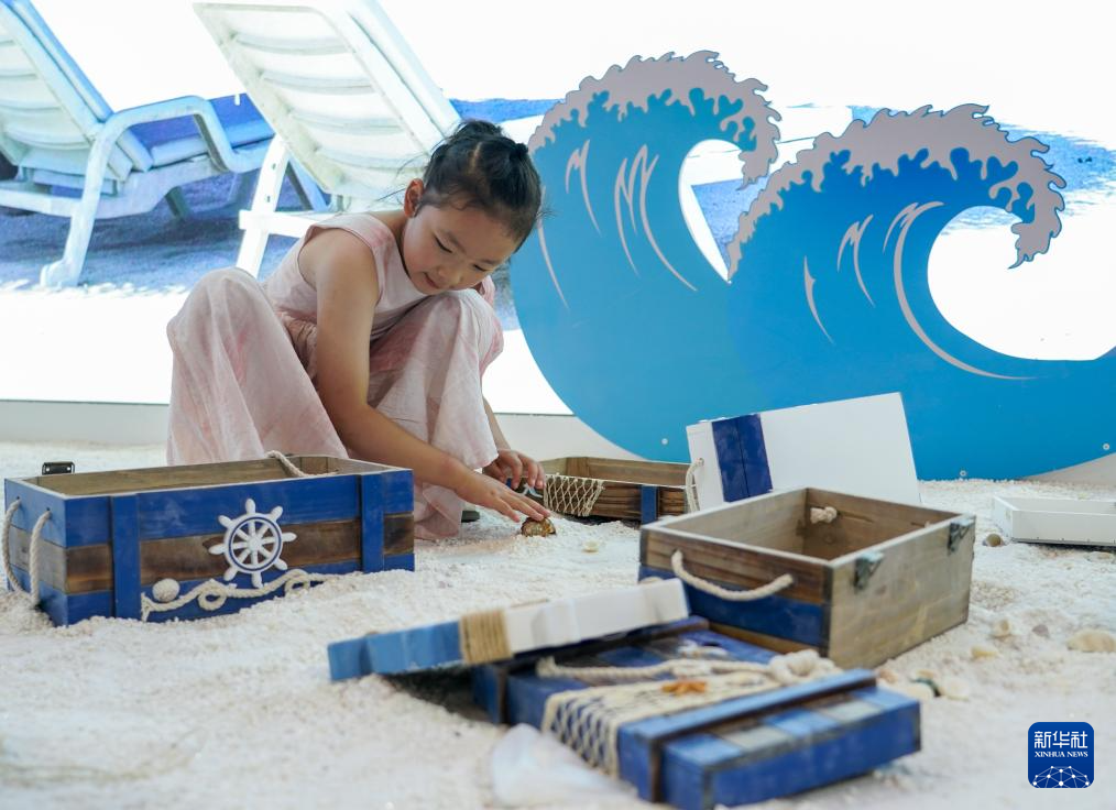 7月26日,在第八屆南博會南亞館,一名小朋友在馬爾代夫展區(qū)玩耍。