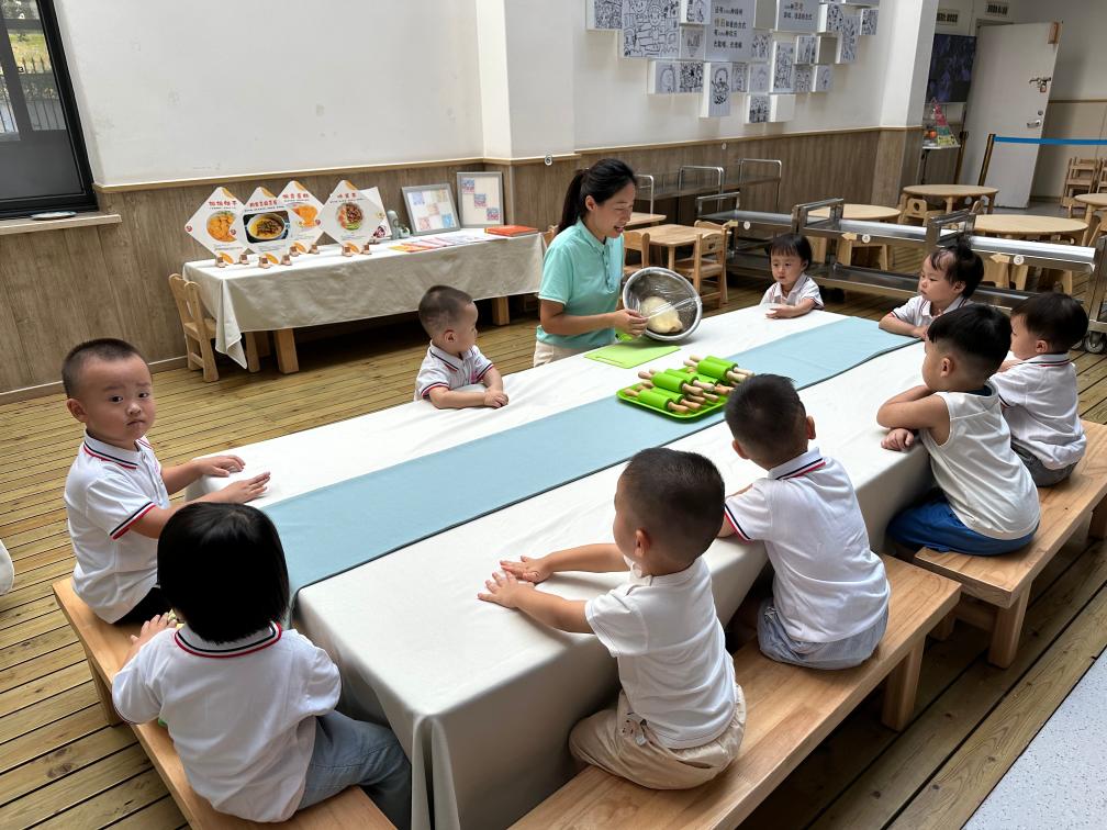 “小手伸出來,我們一起捏面團!”走進重慶市萬州區(qū)雞公嶺玉龍幼兒園,一群2歲左右的小朋友們圍坐桌前,在保育員的帶領(lǐng)下體驗?zāi)竺鎴F。