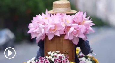 女子騎單車賣(mài)荷花 背簍里是人間美好
