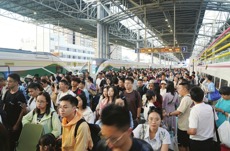 暑運期間,鐵路部門在三季度列車運行圖的基礎上,編制實行暑期臨客運行圖,全國鐵路日均安排開行旅客列車11416列,同比增長9.3%。