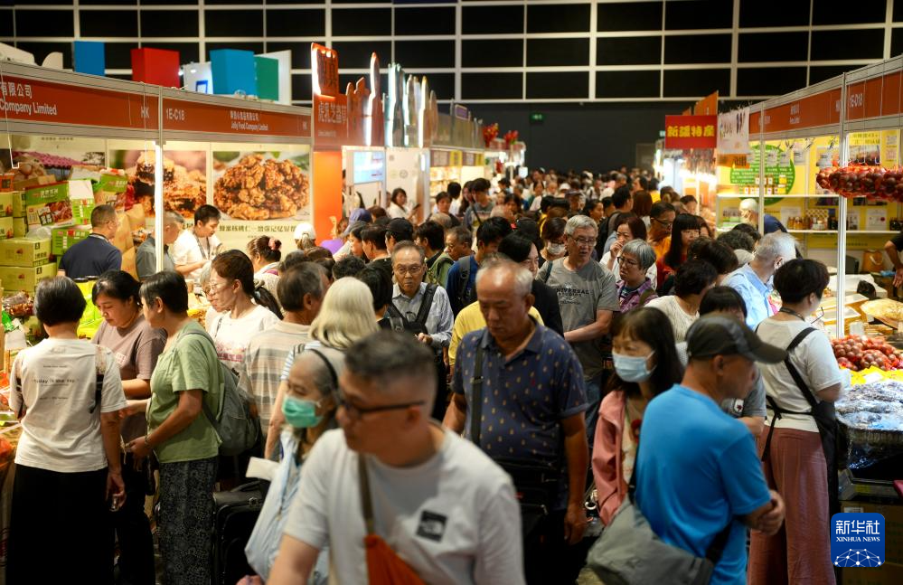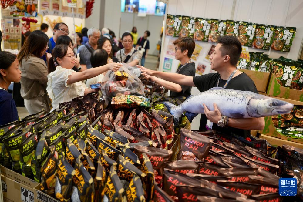 日本水果、西班牙火腿、南非咖啡……走進本屆美食博覽現(xiàn)場,環(huán)球美食琳瑯滿目。盡管香港天文臺當日上午發(fā)出黑色暴雨警告信號,美食博覽延遲至下午1時許才開始,但參觀者熱情不減。不少人更是有備而來,帶上手推車、拉桿箱裝載“戰(zhàn)利品”。