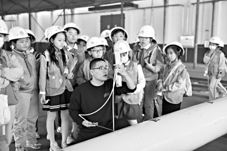 “緊跟老師不走散,眼睛看好腳下路。不動(dòng)設(shè)備不觸摸,戴好口罩聽指揮!”活動(dòng)伊始,庫(kù)區(qū)工作人員并未急于帶孩子們進(jìn)入核心區(qū)域,而是先教大家一段朗朗上口的安全口訣。這列由20多名小成員組成的特殊“小火車”,要在龐大糧庫(kù)中安全“行駛”,必須遵守嚴(yán)格紀(jì)律。