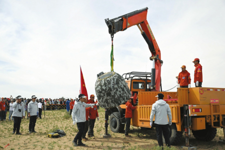 6月25日14時7分,嫦娥六號返回器攜帶來自月背的月球樣品安全著陸在內(nèi)蒙古四子王旗預(yù)定區(qū)域。新華社發(fā)