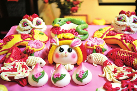 “生肖青蛇臥盤,雙春蛇年生機(jī)盎然;醒獅賀歲,歲歲平安;花開富貴葫蘆,福祿到家;可愛的醒獅兔,蛇盤兔代代富;平安扣青枝上盛開梅花,寓意花開富貴、孕育希望、生機(jī)盎然;可愛福袋,寓意代代有福、福氣滿滿;大紅錦鯉寓意好運(yùn)連連……”馮秀說,今年的花饃圍繞“金蛇送?!边@一主題,設(shè)計(jì)了近20個(gè)品種,每款花饃都寓意吉祥和美好祝福。每一款非遺花饃的創(chuàng)意都是基于傳統(tǒng)文化,都是對(duì)傳統(tǒng)文化的致敬,也是人們對(duì)美好生活的期待和向往,“過年買花饃是吃在嘴里的年味兒,充滿了幸福感,我的花饃顧客來自全國(guó)各地,有的連續(xù)多年定制,成為了老朋友。”
