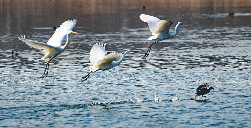 2月18日,正值雨水時節(jié),太原汾河濕地公園呈現(xiàn)出一派生機(jī)勃勃的景象。河水潺潺流淌,冰消雪融,白鷺、紅嘴鷗、白骨頂雞等野生鳥類在水面盡情嬉戲,奏響了春天的樂章。