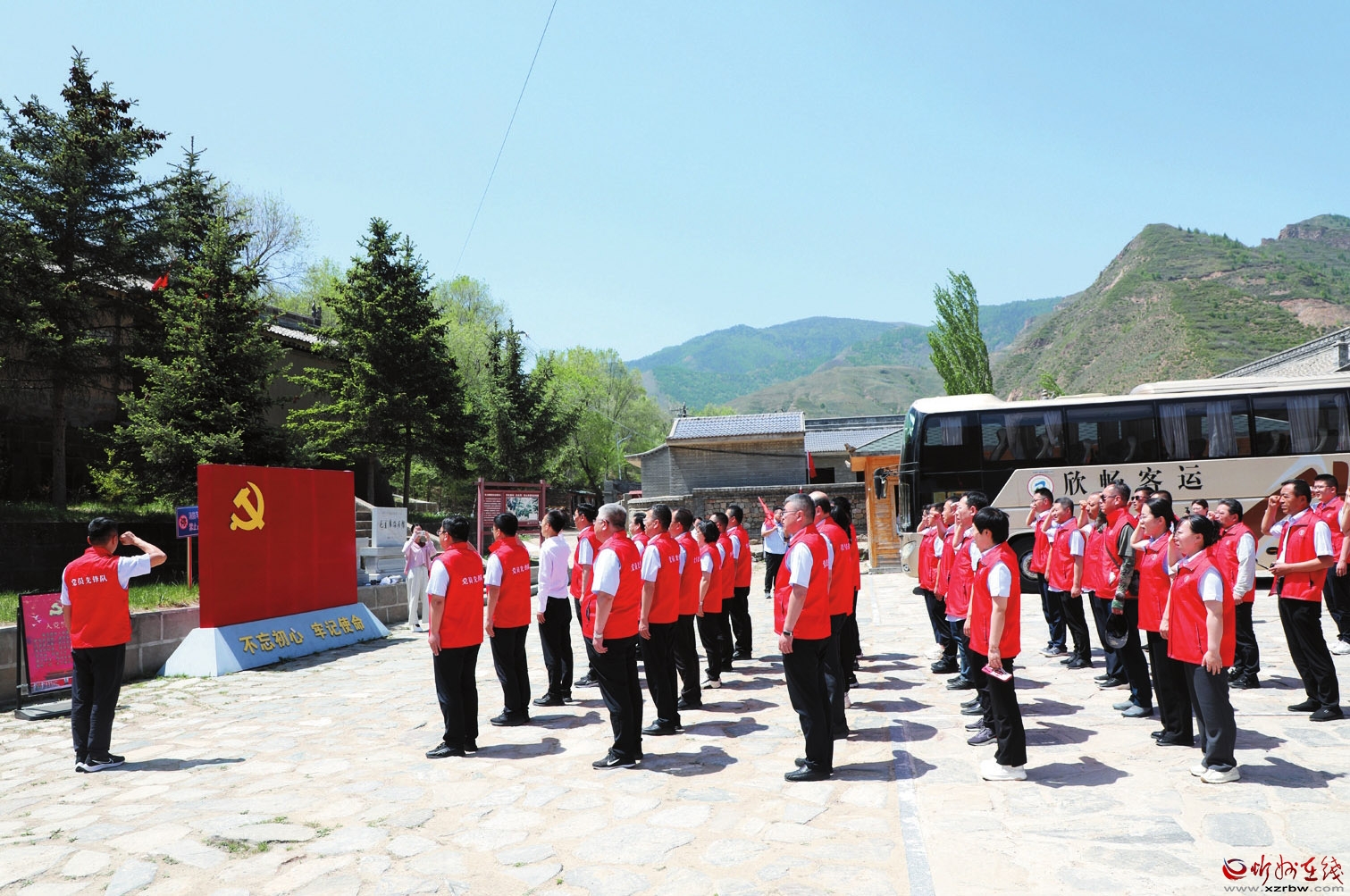 近日,農(nóng)行忻州分行機(jī)關(guān)組織全體黨員前往繁峙縣伯強(qiáng)村毛主席路居紀(jì)念館開展主題黨日活動(dòng)。在紀(jì)念館前,全體黨員面對(duì)黨旗莊嚴(yán)宣誓,重溫入黨誓詞,接受了一次深刻的紅色教育洗禮。(王燦 攝)