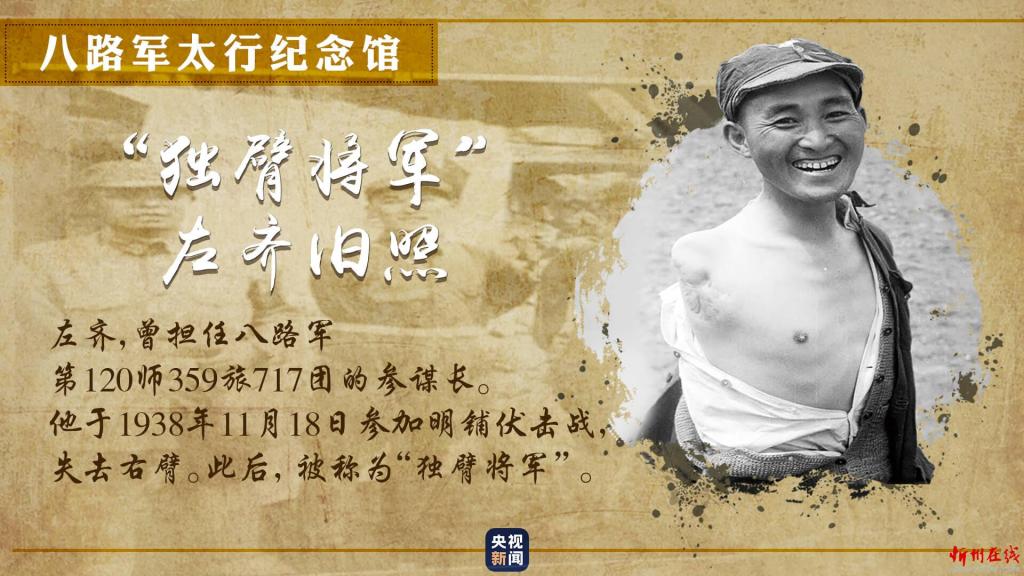一張獨(dú)臂將軍的舊照,展現(xiàn)出八路軍為爭(zhēng)取民族獨(dú)立,不怕犧牲、不畏艱險(xiǎn)的革命英雄主義精神。
