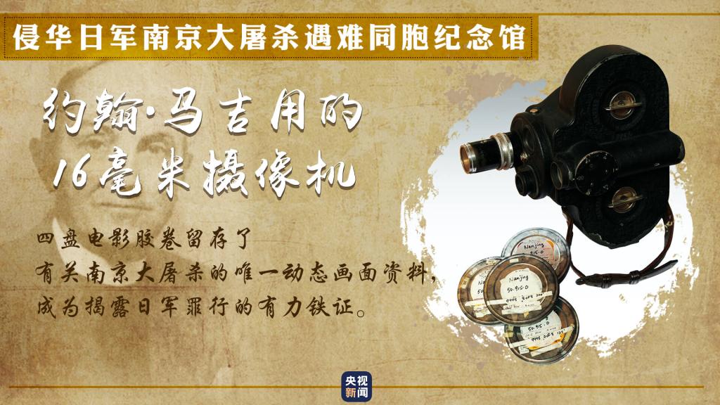 約翰·馬吉用他的16毫米家用攝像機(jī),借職務(wù)之便偷偷拍攝,記錄下日寇的暴行。整整4盤膠卷,每一幀都是揭露日寇罪行的有力鐵證,也是留存至今的有關(guān)南京大屠殺的唯一動(dòng)態(tài)畫面。