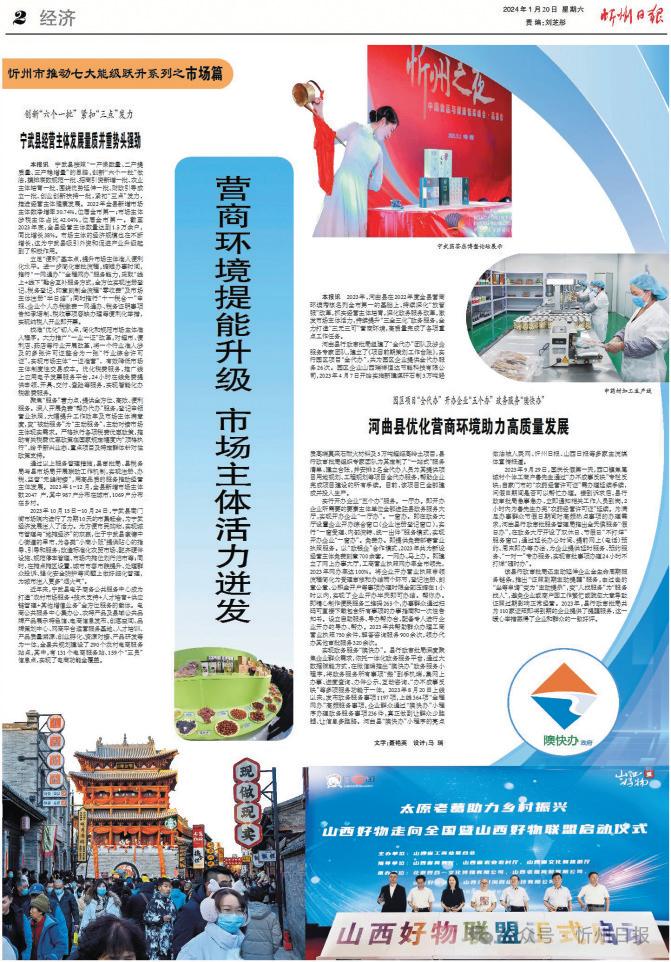 從黃河之畔到五臺山下,一些變化正在忻州大地悄然發(fā)生。2023年,我市從促進(jìn)經(jīng)營主體發(fā)展、大力優(yōu)化營商環(huán)境、加快建設(shè)高標(biāo)準(zhǔn)市場體系三個維度推動市場能級躍升,詮釋著貫徹黨的二十大精神開局之年的新作為、新風(fēng)貌,以“看不見的手”推動著忻州經(jīng)濟(jì)社會高質(zhì)量發(fā)展。