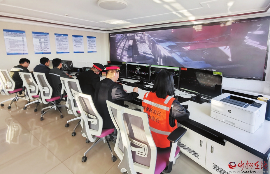 寧武雙萬噸環(huán)保煤炭物流園調(diào)度室內(nèi),工作人員正在緊張工作。