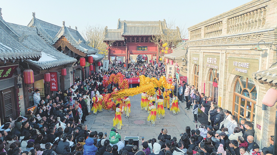 每年的“平遙中國年”都看點(diǎn)十足?!?024平遙中國年”推出了貫穿整個(gè)春節(jié)的“龍祥鳳瑞‘迎’新春”“龍躍鳳舞‘鬧’新春”“龍章鳳彩‘賀’新春”三大板塊15項(xiàng)活動(dòng)。新春祈福、點(diǎn)“靚”古城、非遺社火等民俗活動(dòng)持續(xù)上演,各地游客沉浸式體驗(yàn)了獨(dú)具平遙地方特色和晉商韻味的民俗民風(fēng)。