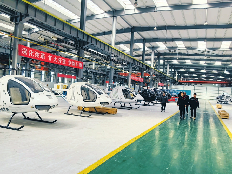 4月11日,山西喆航生產車間內,工作人員再次檢視準備交付的ZH281A直升機。