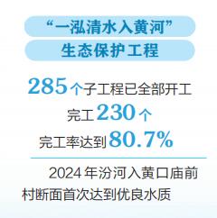 與此同時(shí),我省牢記習(xí)近平總書記寄予山西“一泓清水入黃河”的殷切期盼,2023年6月,啟動(dòng)了“一泓清水入黃河”生態(tài)保護(hù)工程,計(jì)劃用三年時(shí)間,對(duì)黃河的第二大支流——汾河,進(jìn)行全流域、全方位治理。“一泓清水入黃河”生態(tài)保護(hù)工程在聚焦水質(zhì)改善目標(biāo)的基礎(chǔ)上,銜接水網(wǎng)建設(shè)、防洪能力提升、黑臭水體治理等多種類型,通過上下游、干支流、左右岸、水陸域一體謀劃,治污、調(diào)水、清淤、增濕、綠岸一體實(shí)施,取得了初步的生態(tài)效益、社會(huì)效益、經(jīng)濟(jì)效益。如今,285個(gè)子工程已完工230個(gè)、完工率達(dá)到80.7%。