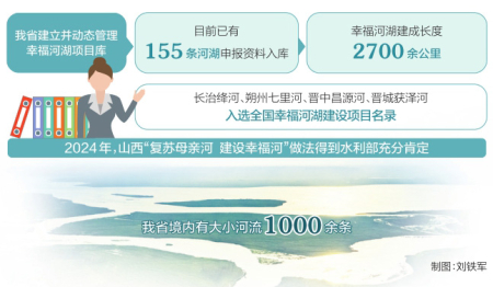 立足全省實際,我省同步推進(jìn)母親河復(fù)蘇與幸福河湖建設(shè),印發(fā)《山西省母親河名錄》,制定《山西省推進(jìn)母親河復(fù)蘇建設(shè)幸福河湖三年行動方案(2024—2026年)》,優(yōu)先把各市縣母親河打造成幸福河。2024年,我省“復(fù)蘇母親河建設(shè)幸福河”做法得到水利部充分肯定。