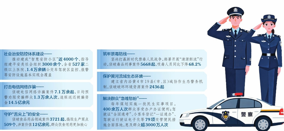 12月9日上午,中共山西省委宣傳部、山西省人民政府新聞辦公室舉行“高質(zhì)量完成‘十四五’規(guī)劃”系列主題第十七場(chǎng)新聞發(fā)布會(huì),省公安廳有關(guān)負(fù)責(zé)同志介紹情況,并回答記者提問(wèn)。 公安工作一頭連著黨和國(guó)家工作大局,一頭連著人民群眾平安福祉?!笆奈濉币詠?lái),全省公安機(jī)關(guān)錨定防風(fēng)險(xiǎn)、保安全、護(hù)穩(wěn)定、促發(fā)展的核心任務(wù),以雷霆之勢(shì)嚴(yán)打各類(lèi)違法犯罪,以暖心之舉優(yōu)化便民利企舉措,全力護(hù)航全省轉(zhuǎn)型發(fā)展大局,為全省經(jīng)濟(jì)社會(huì)發(fā)展?fàn)I造了安全穩(wěn)定的社會(huì)環(huán)境。 排隱患防風(fēng)險(xiǎn) 平安底色更鮮亮 “十四五”以來(lái),全省公安機(jī)關(guān)堅(jiān)持總體國(guó)家安全觀,持續(xù)深化反顛覆反滲透反分裂反恐怖斗爭(zhēng),實(shí)現(xiàn)系列重大安保活動(dòng)萬(wàn)無(wú)一失、各個(gè)節(jié)日節(jié)點(diǎn)平穩(wěn)度過(guò),堅(jiān)決捍衛(wèi)了國(guó)家政治安全。 省公安廳黨委副書(shū)記、主持日常工作的副廳長(zhǎng)朱炳文介紹,全省公安機(jī)關(guān)始終把捍衛(wèi)政治安全擺在首位,以“時(shí)時(shí)放心不下”的責(zé)任感排隱患、防風(fēng)險(xiǎn),持續(xù)開(kāi)展“百萬(wàn)警進(jìn)千萬(wàn)家”活動(dòng),努力將風(fēng)險(xiǎn)化解在基層、消除在萌芽狀態(tài)。加強(qiáng)安全生產(chǎn)監(jiān)管,緊盯民爆物品、道路交通等重點(diǎn)領(lǐng)域,排查整治各類(lèi)風(fēng)險(xiǎn)隱患,全省較大道路交通事故較“十三五”同期下降38.7%,連續(xù)7年未發(fā)生民爆物品爆炸事故。 持續(xù)推進(jìn)社會(huì)治安防控體系建設(shè),推動(dòng)建成“智慧安防小區(qū)”近4000個(gè),指導(dǎo)組建平安類(lèi)社會(huì)組織3000余個(gè),全省527家二級(jí)以上醫(yī)院、1.4萬(wàn)余輛公交車(chē)駕駛區(qū)監(jiān)控、報(bào)警等安防設(shè)施基本實(shí)現(xiàn)全覆蓋。持續(xù)做好校園周邊環(huán)境治理、社會(huì)面巡邏防控等各項(xiàng)工作,學(xué)生上下學(xué)、群眾夜宵、生病就醫(yī)、假期出游都有警察守護(hù),警燈常亮、警車(chē)常巡、警力常在,讓人民群眾感受到平安就在身邊。 重拳打擊護(hù)民安 平安答卷可感知 公安工作的出發(fā)點(diǎn)和落腳點(diǎn)是守護(hù)群眾安全,群眾安全感的提升是檢驗(yàn)公安工作成效的核心標(biāo)尺?!笆奈濉币詠?lái),全省公安機(jī)關(guān)始終把打擊鋒芒對(duì)準(zhǔn)群眾反映強(qiáng)烈的突出違法犯罪,全省治安案件、刑事案件立案數(shù)大幅下降,命案發(fā)案率持續(xù)走低,集中攻破一批陳年命案。 省公安廳黨委委員、副廳長(zhǎng)曾濤表示,全省公安機(jī)關(guān)緊盯涉黑涉惡、電信網(wǎng)絡(luò)詐騙、黃賭毒等突出違法犯罪,精準(zhǔn)發(fā)力、重拳出擊,以看得見(jiàn)的打擊戰(zhàn)果、摸得著的平安保障筑牢平安防線。 堅(jiān)決鏟除黑惡犯罪這一社會(huì)毒瘤,偵破涉黑涉惡案件212起,一大批作惡多端、盤(pán)根錯(cuò)節(jié)的黑惡勢(shì)力得到徹底鏟除。堅(jiān)決遏制電信網(wǎng)絡(luò)詐騙犯罪高發(fā)勢(shì)頭,偵破電信網(wǎng)絡(luò)詐騙案件7.1萬(wàn)余起,日均預(yù)警勸阻受騙群眾1.3萬(wàn)余人次,追贓返還被騙資金14.5億余元。堅(jiān)決守護(hù)“舌尖上”的安全,偵破食品藥品領(lǐng)域案件3721起,搗毀生產(chǎn)窩點(diǎn)509個(gè),涉案價(jià)值12億余元,群眾飲食用藥更加放心。 部署開(kāi)展“清源斷流”行動(dòng),偵破毒品刑事案件5668起,吸毒人員同比下降68.2%,堅(jiān)決打贏新時(shí)代禁毒人民戰(zhàn)爭(zhēng)。同時(shí),堅(jiān)決辦好民生小案,全省“盜搶騙”案件大幅下降,有力提升了人民群眾獲得感、幸福感和安全感。 強(qiáng)服務(wù)助發(fā)展 護(hù)航轉(zhuǎn)型更精準(zhǔn) “十四五”以來(lái),全省公安機(jī)關(guān)圍繞中心、服務(wù)大局,努力用公安的辛苦指數(shù)換取全省的發(fā)展指數(shù),以精準(zhǔn)警務(wù)舉措為全省轉(zhuǎn)型發(fā)展注入強(qiáng)勁動(dòng)能。 保駕護(hù)航產(chǎn)業(yè)創(chuàng)新發(fā)展方面。助力建設(shè)高標(biāo)準(zhǔn)市場(chǎng)體系,完善經(jīng)濟(jì)金融風(fēng)險(xiǎn)防范預(yù)警機(jī)制,偵破各類(lèi)經(jīng)濟(jì)犯罪案件9943起,挽回直接經(jīng)濟(jì)損失70億余元;強(qiáng)化警企協(xié)作機(jī)制,開(kāi)展知識(shí)產(chǎn)權(quán)保護(hù)“警盾助企”活動(dòng),偵破侵犯知識(shí)產(chǎn)權(quán)犯罪案件620起,挽回經(jīng)濟(jì)損失7.2億余元。 助力黃河流域生態(tài)環(huán)境保護(hù)方面。建立省內(nèi)沿黃4市19縣(市、區(qū))域協(xié)作生態(tài)警務(wù)機(jī)制,偵破破壞環(huán)境資源案件2436起。目前,黃河流域優(yōu)良水體比例達(dá)到90%,“兩山”“七河”“五湖”很多地方成為熱門(mén)打卡地。 助力打造對(duì)外開(kāi)放新高地方面。推動(dòng)240小時(shí)過(guò)境免簽政策在我省落地。今年1月至10月,臨時(shí)來(lái)晉境外人員同比增長(zhǎng)123.2%。同時(shí),全省公安機(jī)關(guān)每年謀劃實(shí)施一批民生實(shí)事項(xiàng)目,扎實(shí)推進(jìn)“高效辦成一件事”落實(shí),深化高頻戶(hù)政