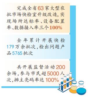 完成全省63家大型農(nóng)批市場快檢室升級改造,實現(xiàn)場所達標率、設(shè)備配置率、數(shù)據(jù)接入率三個100%;通過高頻次檢測,實現(xiàn)農(nóng)批市場經(jīng)營主體100%覆蓋;食用農(nóng)產(chǎn)品追溯,入場經(jīng)營戶“一戶一碼”賦碼率100%……