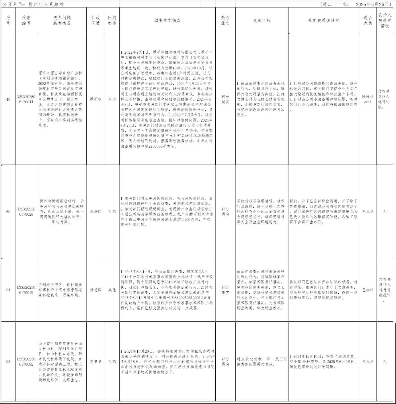 中央生態(tài)環(huán)境保護(hù)督察組群眾信訪舉報(bào)轉(zhuǎn)辦和邊督邊改公開情況一覽表(第二十一批)