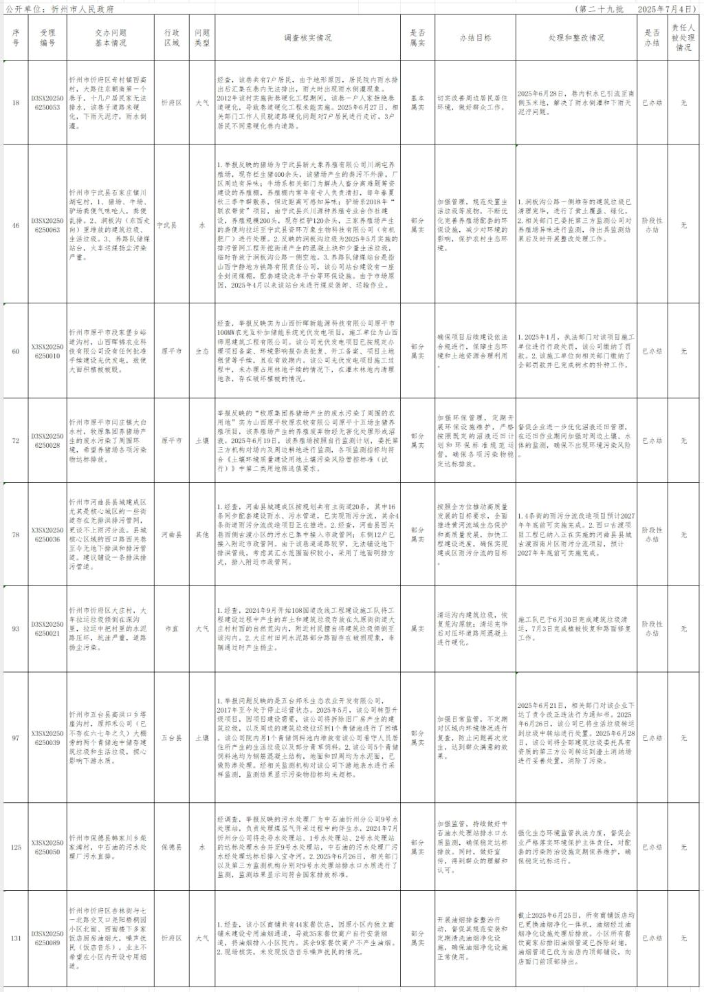 中央生態(tài)環(huán)境保護(hù)督察組群眾信訪舉報(bào)轉(zhuǎn)辦和邊督邊改公開情況一覽表(第二十九批)