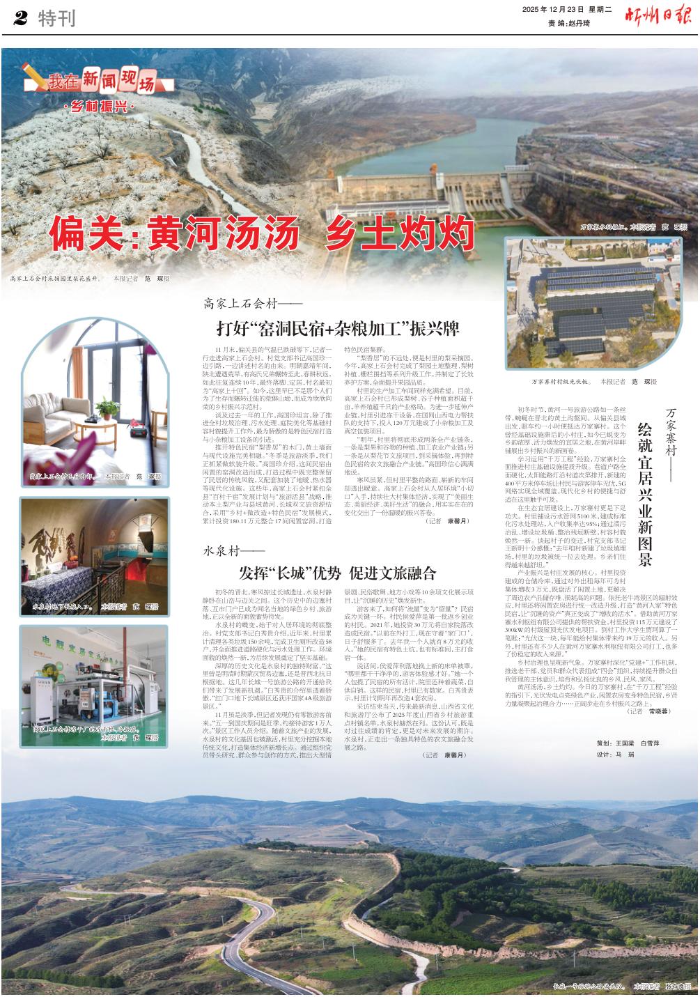 黃河湯湯,鄉(xiāng)土灼灼。今日的萬家寨村,在“千萬工程”經(jīng)驗的指引下,光伏發(fā)電點亮綠色產(chǎn)業(yè),閑置農(nóng)房變身特色民宿,鄉(xiāng)賢力量凝聚起治理合力……正闊步走在鄉(xiāng)村振興之路上。